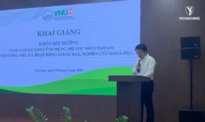 Trong ba ngày 09–11/9/2025, tại Khu đô thị Hòa Lạc, Đại học Quốc gia Hà Nội (ĐHQGHN) đã tổ chức chuỗi lớp bồi dưỡng kỹ năng ứng dụng trí tuệ nhân tạo (AI) cho cán bộ, giảng viên và nhân viên. Chương trình nhằm trang bị kiến thức nền tảng và kỹ năng thực hành, đồng thời khơi dậy tinh thần sáng tạo để thúc đẩy đổi mới giáo dục đại học trong kỷ nguyên số.